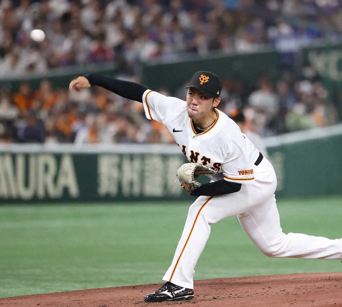 <巨・中>巨人の先発・松井。初回から必死に腕を振る (撮影・西川祐介)