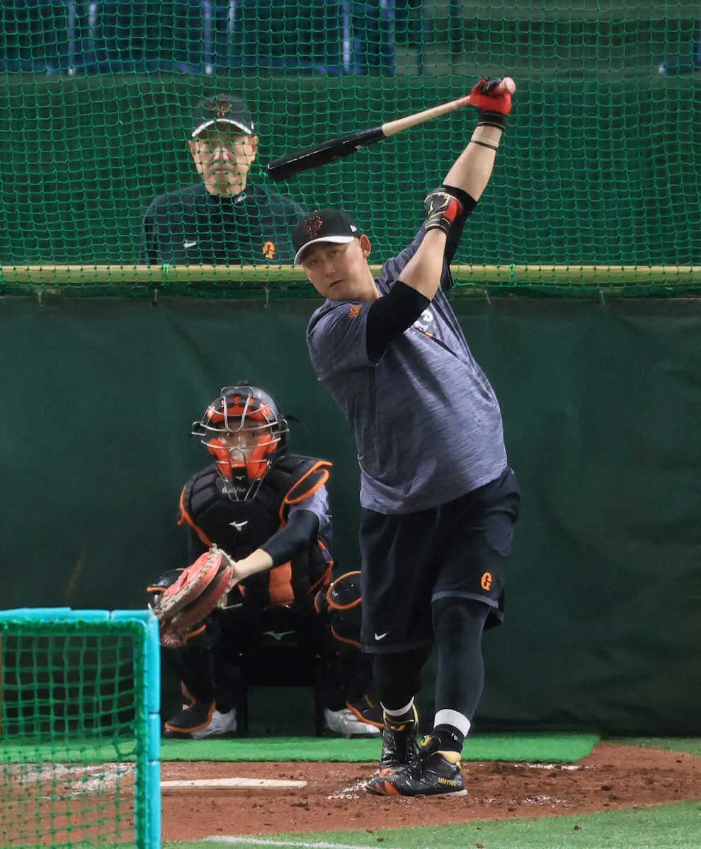 <巨・中>試合前、原監督の前で打撃練習する中田翔(撮影・尾崎 有希)