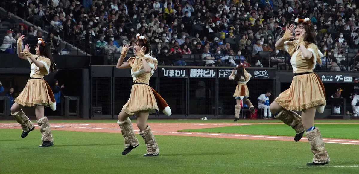 <日・ソ>特別コスチュームを着てきつねダンスを踊るファイターズガールの塩沢美咲さん(撮影・高橋 茂夫) Photo by スポニチ Fガール「きつねダンス」の新衣装にファン興奮「衣装変わってる」「か、可… ギャラリーで見る この記事のフォト 2023年05月23日の画像一覧 もっと見る 2023年05月23日の画像をもっと見る