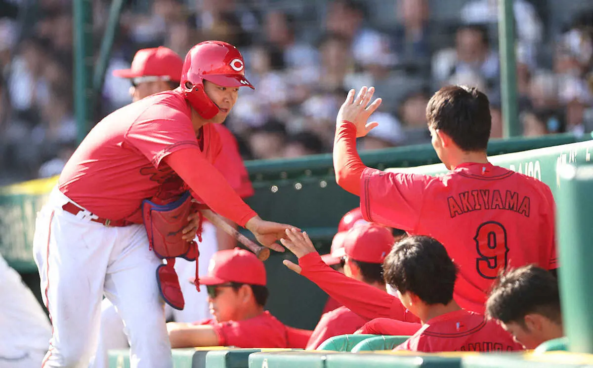 21日の阪神戦で適時打を放った林(左)