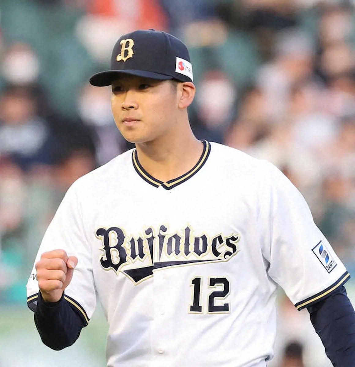 <オ・楽>オリックス先発・山下は2回を無失点にしのぎガッツポーズ(撮影・岸 良祐)