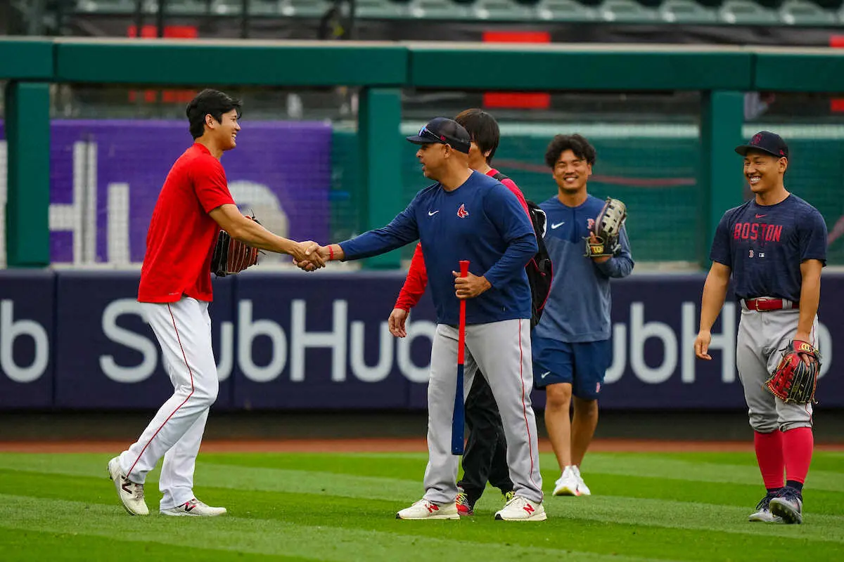 <エンゼルス・レッドソックス>試合前、吉田(右)と会話を交わす大谷(撮影・会津 智海) Photo by スポニチ 大谷「3番・DH」、吉田「2番・左翼」で出場 大谷が今季初の本拠地でのフ… ギャラリーで見る この記事のフォト 2023年05月24日の画像一覧 もっと見る 2023年05月24日の画像をもっと見る