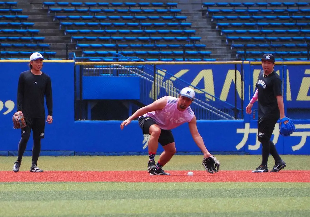 ロッテ自主練習 益田、沢村ら救援陣が内野守備で軽快な動き