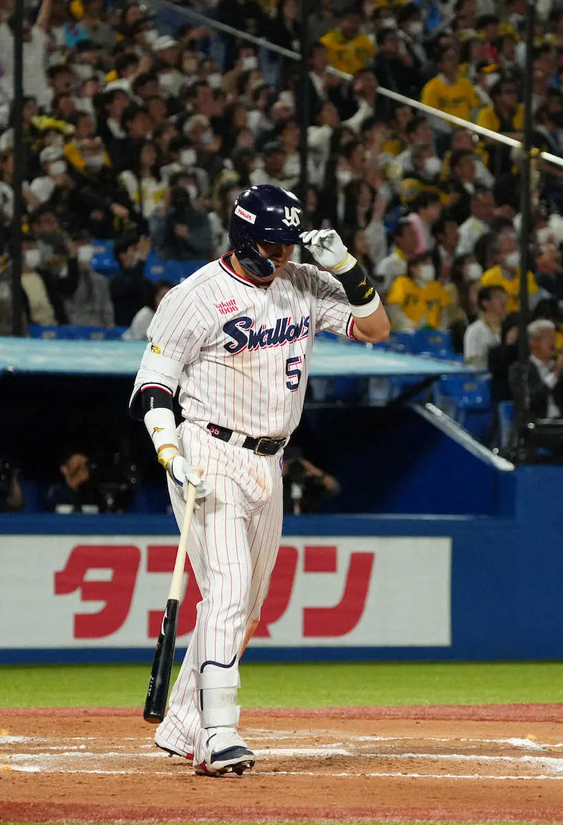<ヤ・神>10回、村上はソロを放つも表情は厳しく(撮影・沢田 明徳)