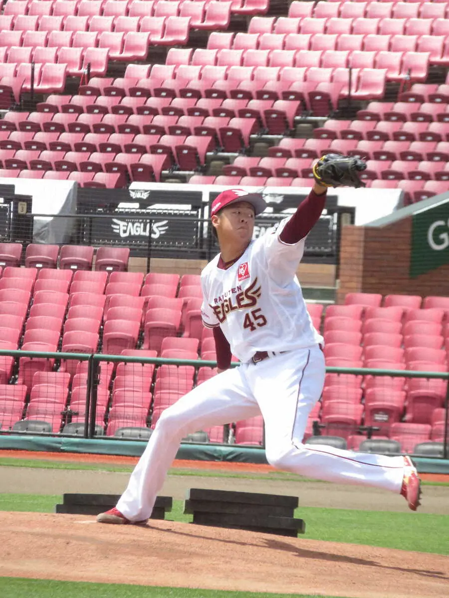 27日の日本ハム戦(楽天モバイル)に先発予定の楽天・松井友飛投手(23)が25日、同球場で行われた先発投手練習に参加した。