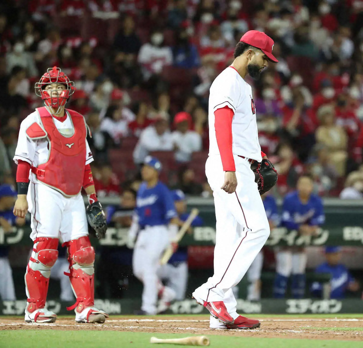 前回18日のDeNA戦から2試合連続で5失点して3敗目。先発転向後、5試合を終え初星が遠いドミニカンは「本当に早く勝利が欲しい。諦めない」と前を向く。新井監督は「彼の良さである荒々しさを、もう少し出していいんじゃないかな。映像を見直し次に向かって準備をしてくれと伝えた」と語った。