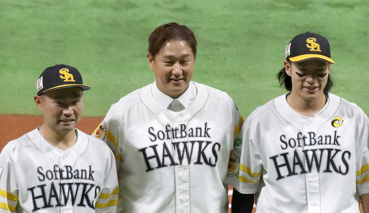 ソフトバンクに2年間在籍した李大浩(イ・デホ)氏が、ロッテ戦前に粋な演出のもとセレモニアルピッチ役を終えた。14年に4番で全試合出場、15年の日本シリーズMVPに輝いた右の大砲は8年ぶりに福岡に凱旋。当時の背番「10」のユニホームを着て、左ミットで捕手・中村晃、打席には柳田が立つ中でストライクの球を投げ込んだ。日本、韓国、米国で2645試合に出場したレジェンドは「当時、若かった柳田、中村(晃)が先輩になって頑張っている。うれしい。優勝できたし2年間は本当に楽しかった」と現役時を懐かしんだ。
