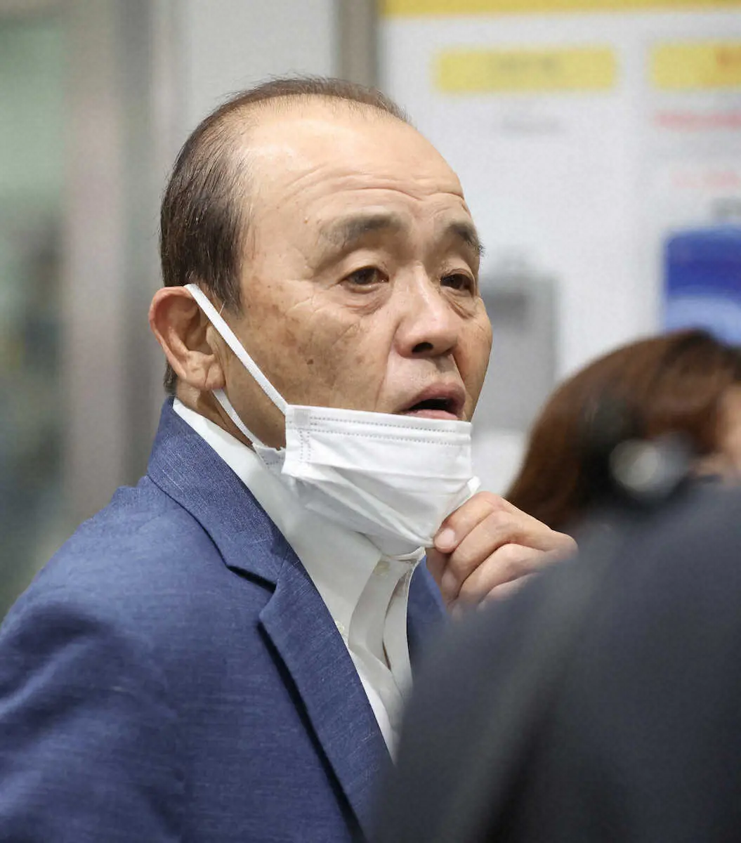 新大阪駅から東京行きの新幹線に乗り込む岡田監督(撮影・大森 寛明)