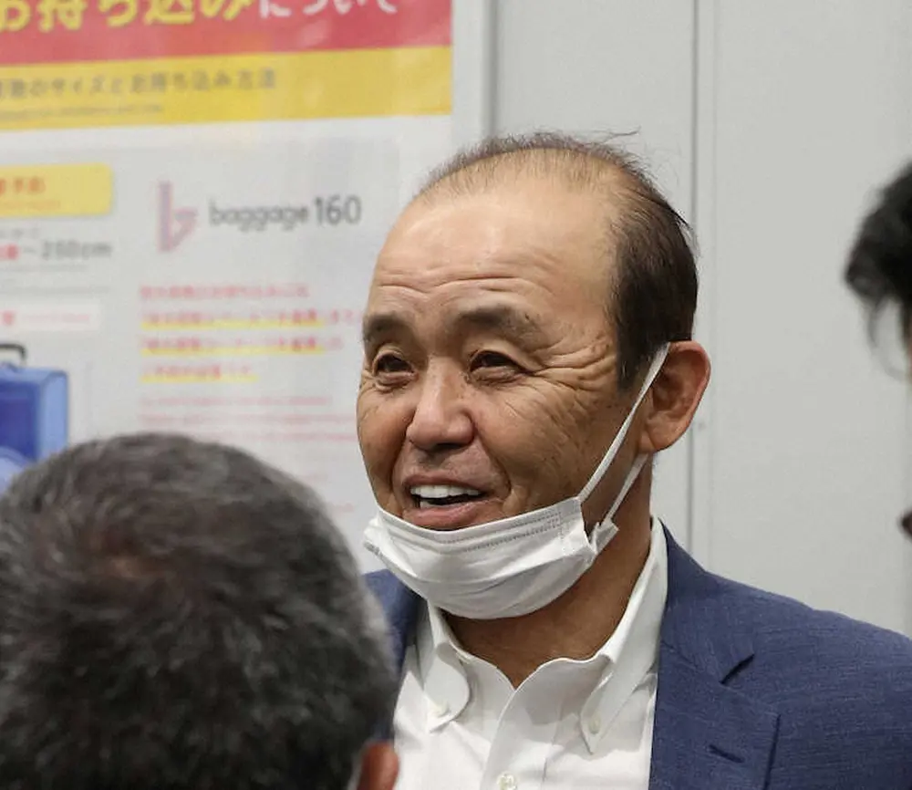 東京への移動のため新大阪駅を訪れた岡田監督(撮影・須田 麻祐子)
