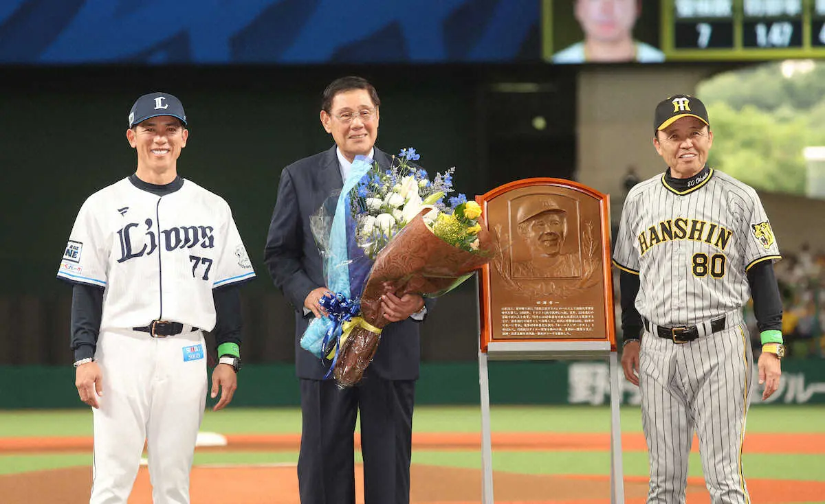 ベルーナドームで行われた西武―阪神1回戦の試合前に、スポニチ本紙評論家で西武、阪神で通算474本塁打を記録した田淵幸一氏(76)の野球殿堂入りを祝うセレモニーが行われた。