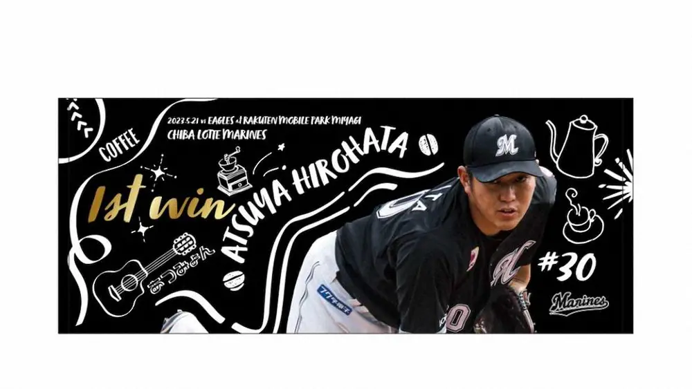 ロッテ・広畑敦也投手の初勝利記念フェイスタオルの画像(球団提供)