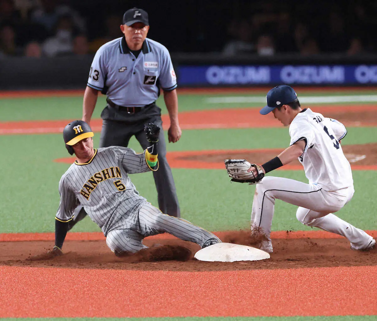 初回は2ボールから本田の外角直球を右越え二塁打。「直球に近い球がきたらいこうと思っていた」。初回初球を右越え三塁打した前夜を再現するような強打で滑り出した。四球を選んだ5回はけん制での帰塁の際に一塁手・渡部の右膝が首付近を強打。一時はもん絶しながら、中野への5球目には二盗を決めた。7盗塁はリーグ最多を快走。元気いっぱいの奮戦で「痛みは大丈夫」と強調した。