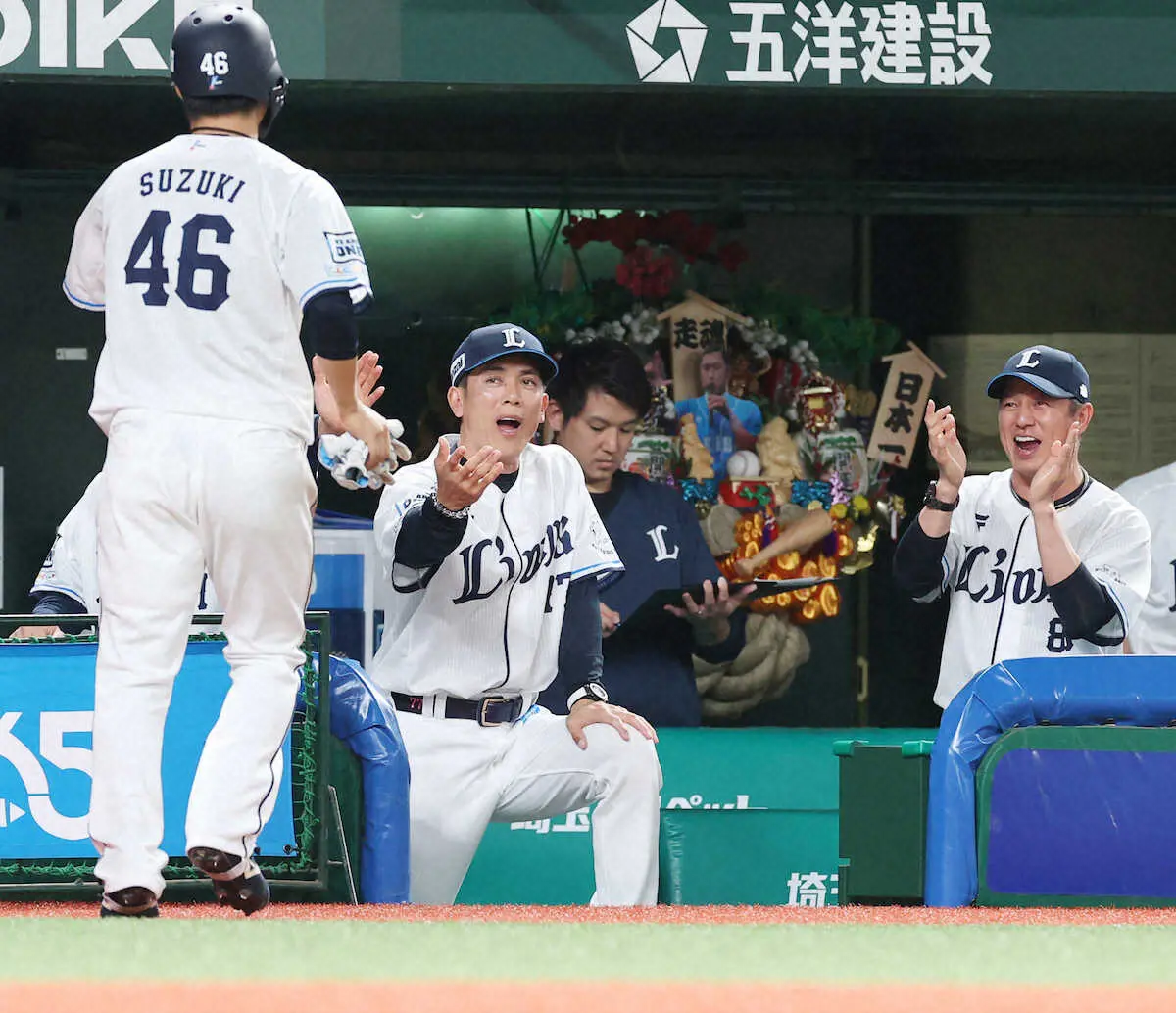 「月も変わりましたからね。また(オードリー)春日さんのあれ(試合前に激励で贈られた巨大な熊手)もいただき。ベンチの中にあるのでね。でも本当に一戦一戦しっかりやっていきたいと思いますし」