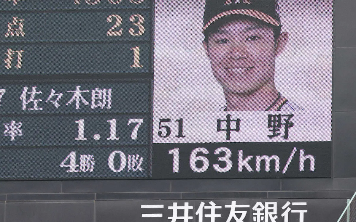 <神・ロ> 中野へ163キロの直球を投じるロッテ先発・佐々木朗希 (撮影・須田 麻祐子) Photo by スポニチ ロッテ佐々木朗希、初回いきなり最速163キロに甲子園どよめく 21年プロ初… ギャラリーで見る この記事のフォト 2023年06月04日の画像一覧 もっと見る 2023年06月04日の画像をもっと見る