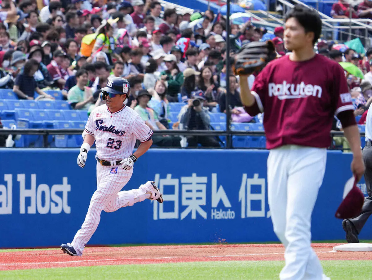 ヤクルトの新旧キャプテンがチームに勢いを取り戻させた。まずは青木だ。初回1死一塁。懐まで呼び込んで左方向に飛んだ打球が追い風に乗った。左翼ポール際、最前列へ今季1号の先制2ラン。「感触をちょっと忘れていた。やっぱりゆっくりダイヤモンドを走るのは野球の醍醐味(だいごみ)」と昨年8月16日以来となる一発の手応えをかみしめた。