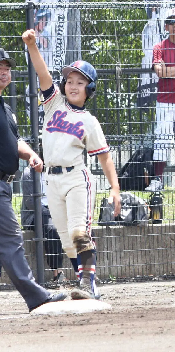 決勝のホームを踏みガッツポーズする磯辺シャークス・菅原 Photo by スポニチ 【学童野球・千葉】磯辺シャークス 10年ぶり全国にあと1つ ギャラリーで見る この記事のフォト 2023年06月05日の画像一覧 もっと見る 2023年06月05日の画像をもっと見る