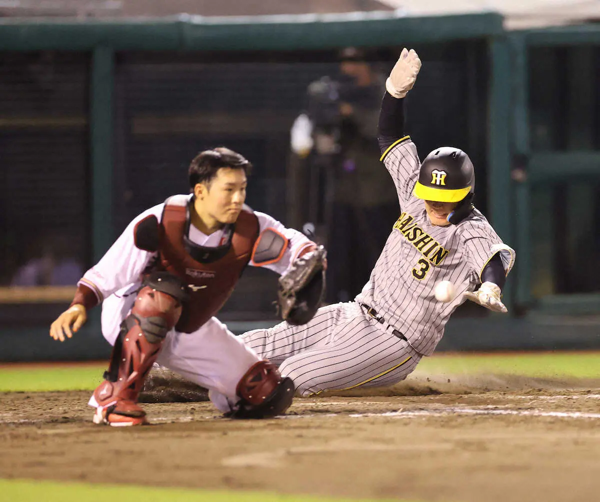 先頭・中野が3番手・酒居から選んだ四球が開演のブザー。続くノイジーの何でもない右飛を小郷が落球して再び無死一、二塁の好機をもらい、大山の飛球は右中間へ。これも決して快打ではない。小郷が今度は目測を誤り、試みたダイビングキャッチも及ばず、打球は芝で弾んだ。記録は適時二塁打。1点差に迫り、二、三塁から佐藤輝の一ゴロで同点とし、7回の好機では凡退だった渡辺諒が一時勝ち越しの中犠飛で応えた。