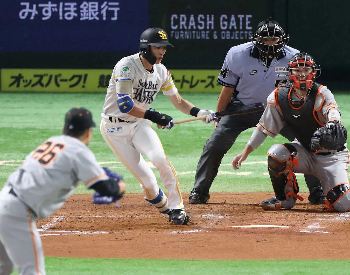 <ソ・巨>3回、三塁手・岡本和は周東のセーフティーバントの打球を捕球できず撮影・岡田 丈靖) Photo by スポニチ 巨人が大胆な周東シフト!三塁手・岡本和はベースのはるか前を守る ギャラリーで見る この記事のフォト 2023年06月10日の画像一覧 もっと見る 2023年06月10日の画像をもっと見る