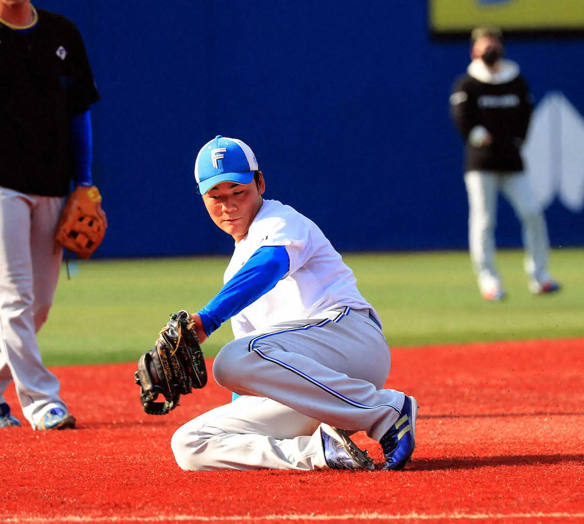<D・日>試合前練習中にノックを受ける清宮(撮影・久冨木 修) Photo by スポニチ 新庄監督 1軍合流の日本ハム・清宮幸太郎に「ダマされたかな(笑い)」 ギャラリーで見る この記事のフォト 2023年06月13日の画像一覧 もっと見る 2023年06月13日の画像をもっと見る