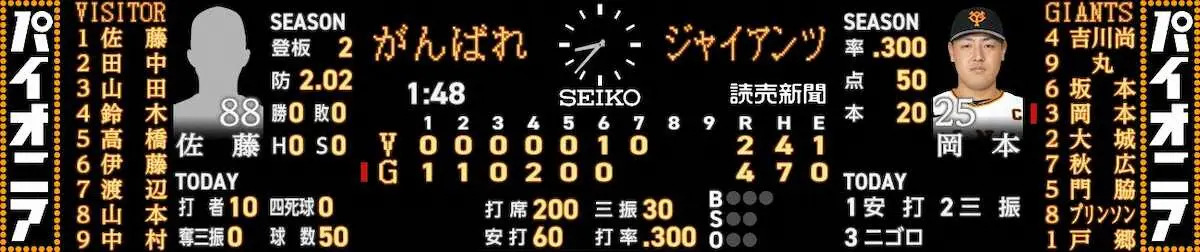 7月のオールドサマーシリーズでは電光掲示板が後楽園球場仕様に