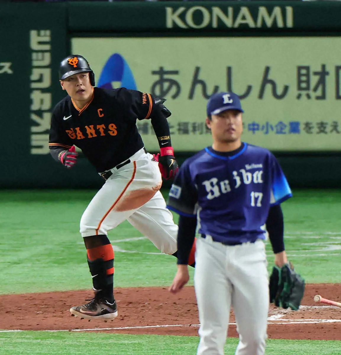 これにスライディングキャッチを試みた西武の左翼手・鈴木が後逸。一走・秋広が一気に本塁へ生還し、岡本和も二塁へ進んだ。
