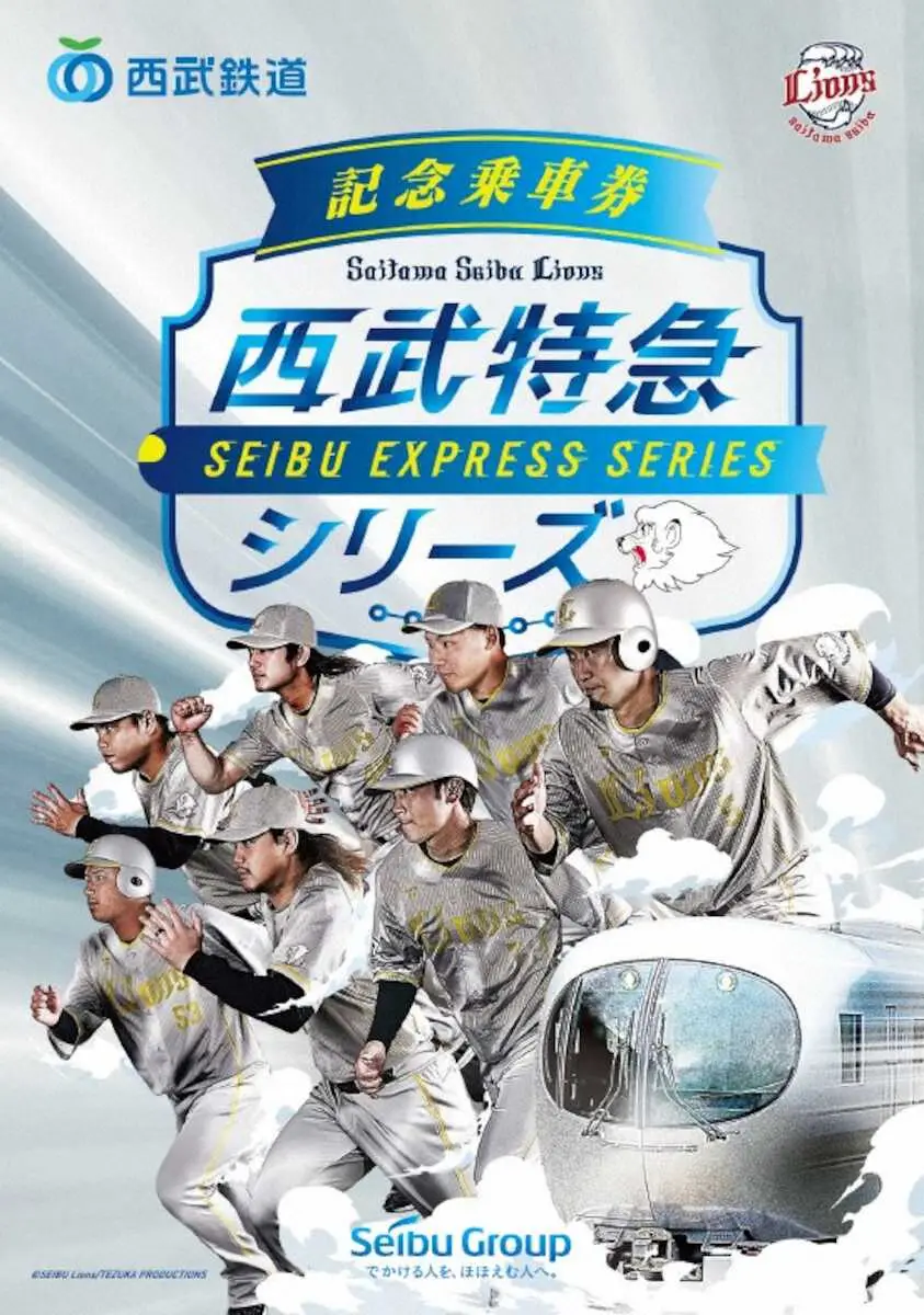 西武鉄道と西武は、6月30日より開催する「西武特急シリーズ」にあわせ、両社で連携した企画を多数展開する。6月30日から西武特急シリーズ記念乗車券を発売。躍動感あふれる選手と特急ラビューがデザインされた台紙と、3人の投手と歴代特急があしらわれた3枚の硬券がセットになっている。