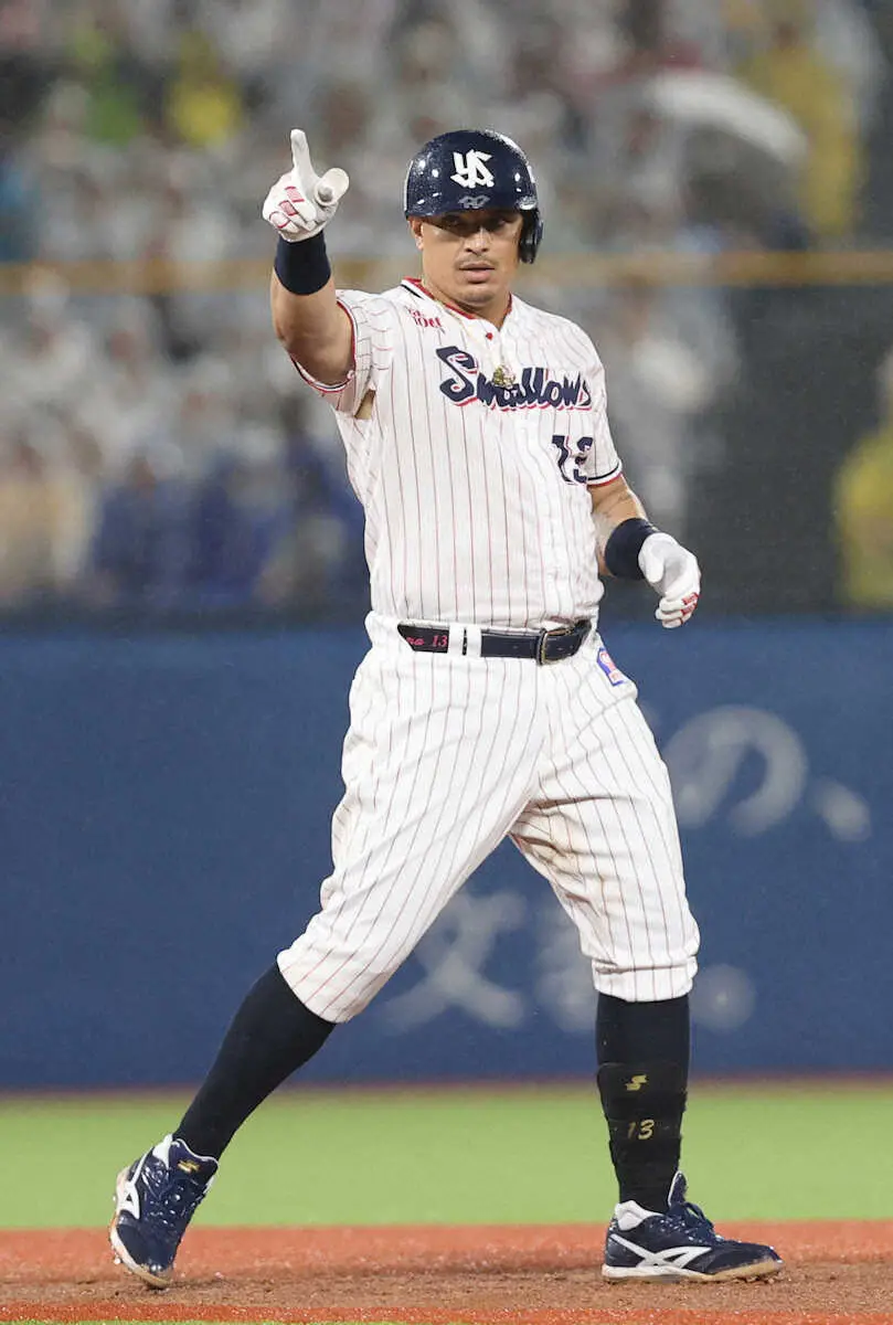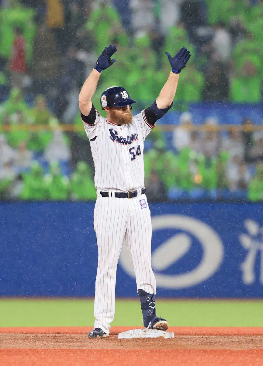 <ヤ・ソ>3回、二塁打を放ち喜ぶサイスニード(撮影・尾崎 有希)