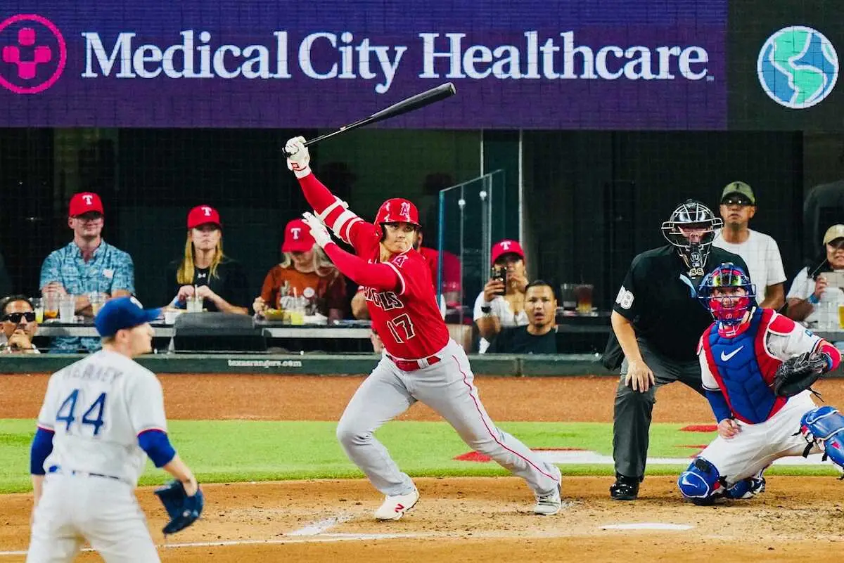 7回無死の第4打席は二ゴロだったが、5点を追う9回2死二塁の第5打席で、レ軍のクローザーのスミスから左中間に完ぺきな当たりの21号2ラン。飛距離は453フィート(約138・1メートル)、打球速度は116・1マイル(約186・8キロ)、打球角度は26度。12日(同13日)のレンジャーズ戦の19号同点ソロ、20号決勝2ラン以来2試合ぶりの本塁打で、ア・リーグの本塁打争いで2位のジャッジ(ヤンキース)に2本差とした。また、ジャッジが規定打席数を割ったため、OPS・987はリーグ1位に浮上。11日(同12日)のマリナーズ戦から続く連続試合マルチ安打は「4」に伸びた。