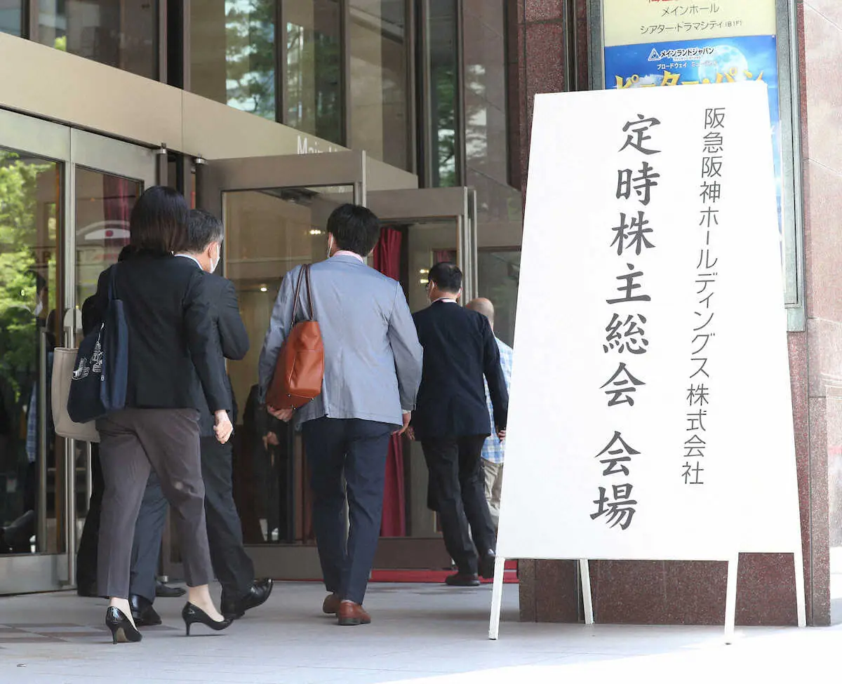 阪神タイガースの親会社、阪急阪神ホールディングスの株主総会が16日、大阪市内で行われた。チームが低迷すると、虎党株主が不振の責任を追及することも過去にはあった株主総会。今年は復帰した岡田監督の下、ここまで37勝22敗2分けと、セ・リーグ首位をキープしており、虎党株主の反応が注目されていた。