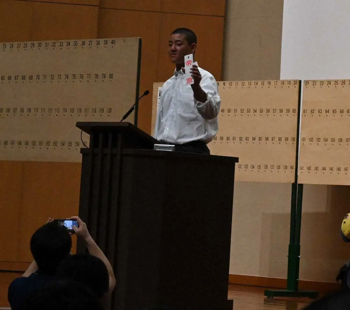 抽選を行った帝京の浅見(撮影・村井 樹)