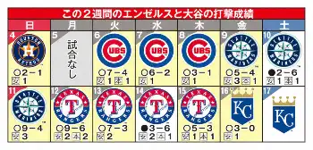 大谷、13戦連続安打 なおエ…ンゼルスはここ12戦10勝!!貯金8でPO圏勝率1厘差