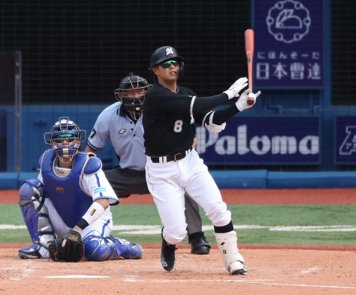 ロッテは18日、横浜スタジアムでDeNAと対戦。4回、中村奨吾内野手(31)が4回に今季5号となる左越えの先制ソロを放った。