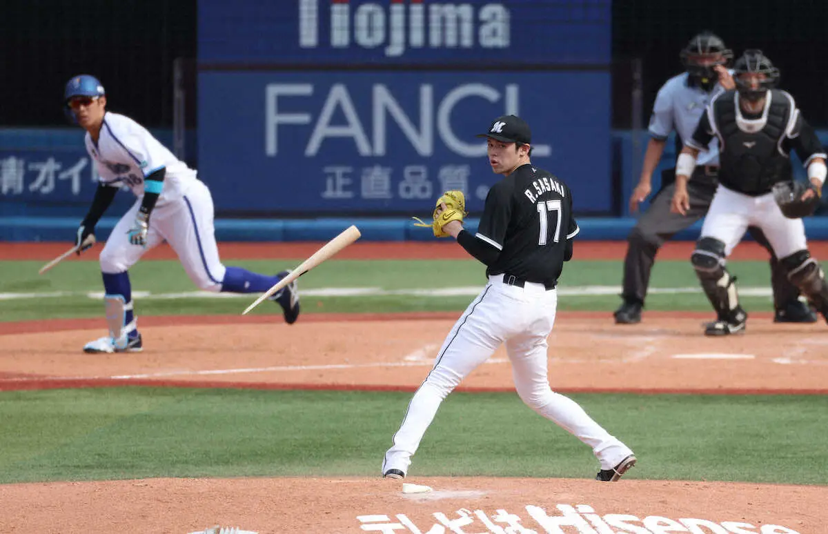 佐々木朗希 危ない!ヒヤリ 投直&折れたバットあわや直撃しそうに…好捕でピンチ切り抜ける