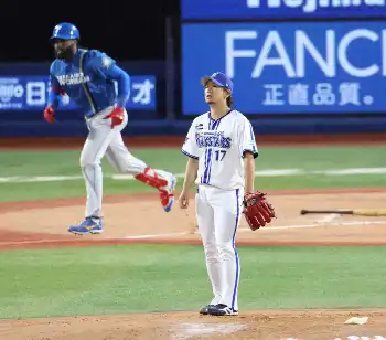 <D・日>5回、ハンソンに先制のソロ本塁打を浴びる三嶋 (撮影・白鳥 佳樹)