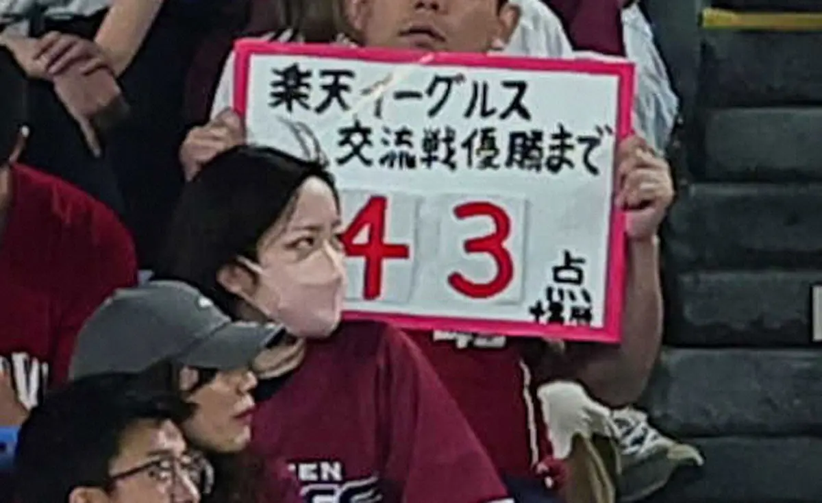 大逆転優勝を信じるファンが神宮で掲げた「楽天イーグルス交流戦優勝まで あと30」の応援ボードが次々に更新されていく。数字が増えれば増えるほど優勝の可能性が遠のく中で、数字はむなしく加算され続け、5回終了時には「13」がプラスされ「あと43」に達した。