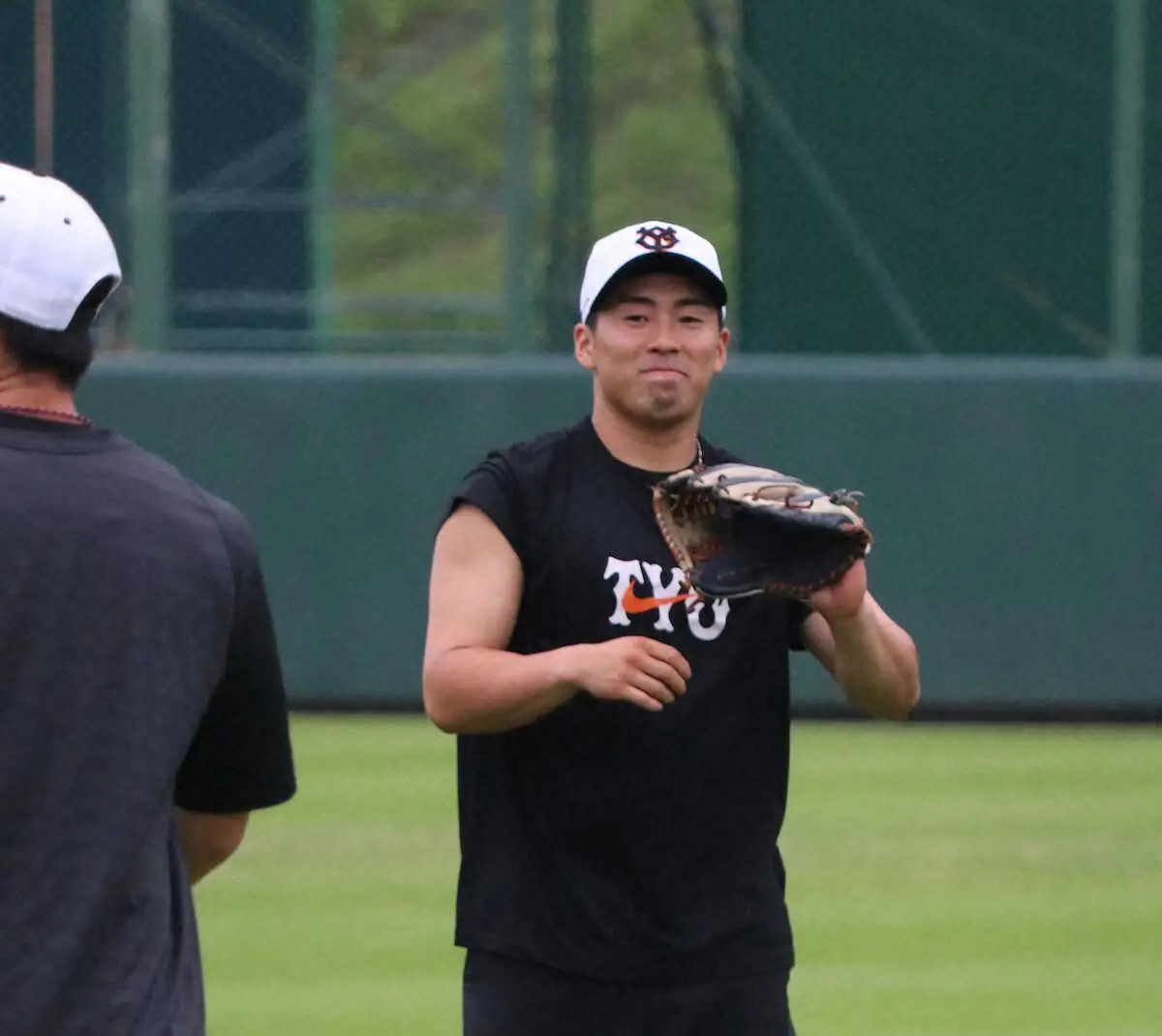 練習で笑顔を見せる巨人・浅野