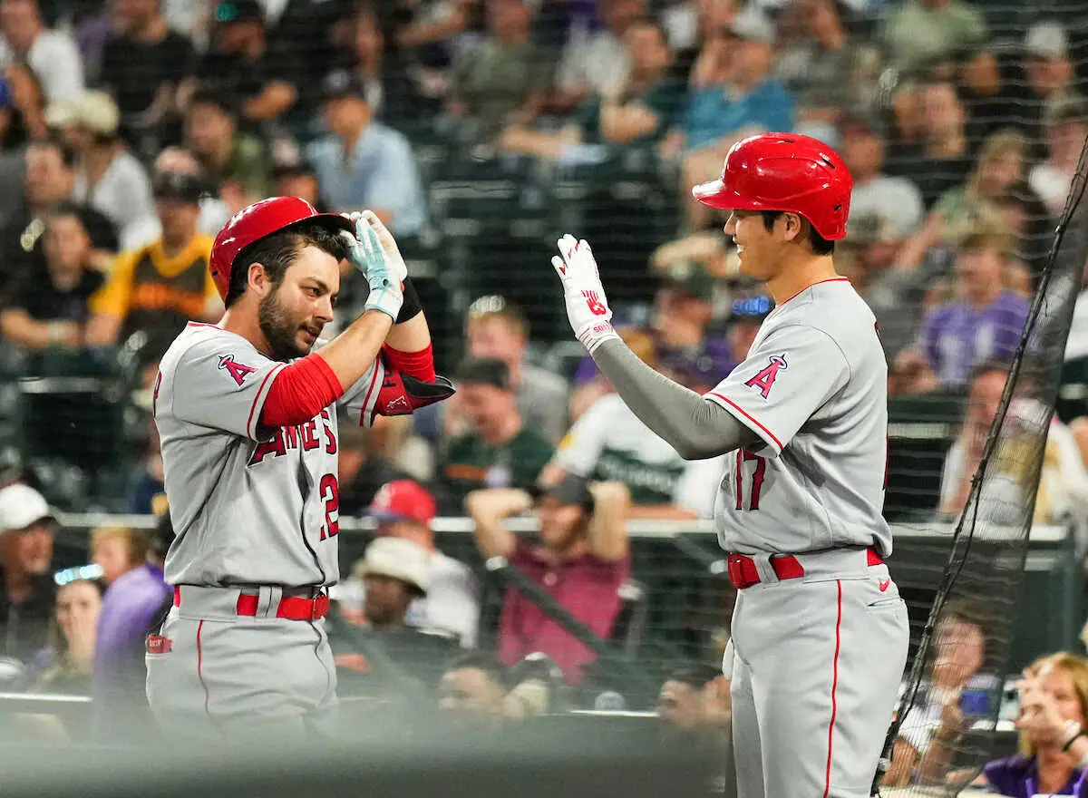 <ロッキーズ・エンゼルス>4回、2ランを放ったモニアクはナインの出迎えを受ける(撮影・沢田 明徳) Photo by スポニチ エンゼルス 打ち過ぎて「兜」壊れちゃった! 記録ずくめ猛打、球団新の2… ギャラリーで見る この記事のフォト 2023年06月25日の画像一覧 もっと見る 2023年06月25日の画像をもっと見る