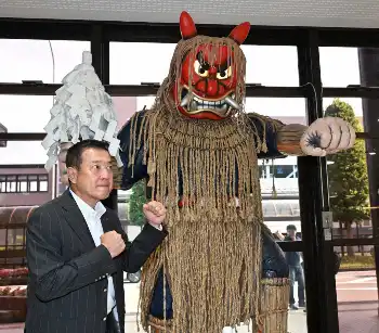 エンゼルスのホームラン兜を製作する「甲冑工房丸武」が「エンゼルス・オリジナル甲冑」を寄贈