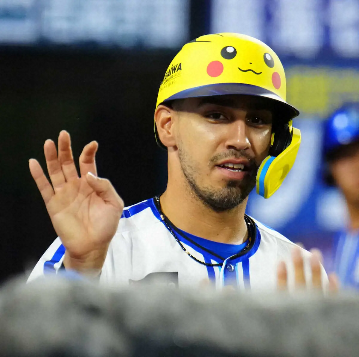 ピカチュウデザインヘルメットがピカピカと抜群の存在感を見せる中、0ー0の4回に先頭のソトが相手先発左腕・小笠原の147キロ直球を捉え、右翼越え二塁打で出塁。続く大和が2打席連続となる安打を放ち無死一、三塁のチャンスをつくった。