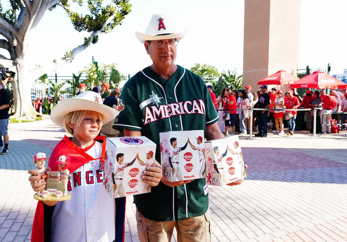 【画像・写真】エンゼルス大谷 トラウトとの「シティー・コネクト・ボブルヘッド」配布 試合前から長蛇の列