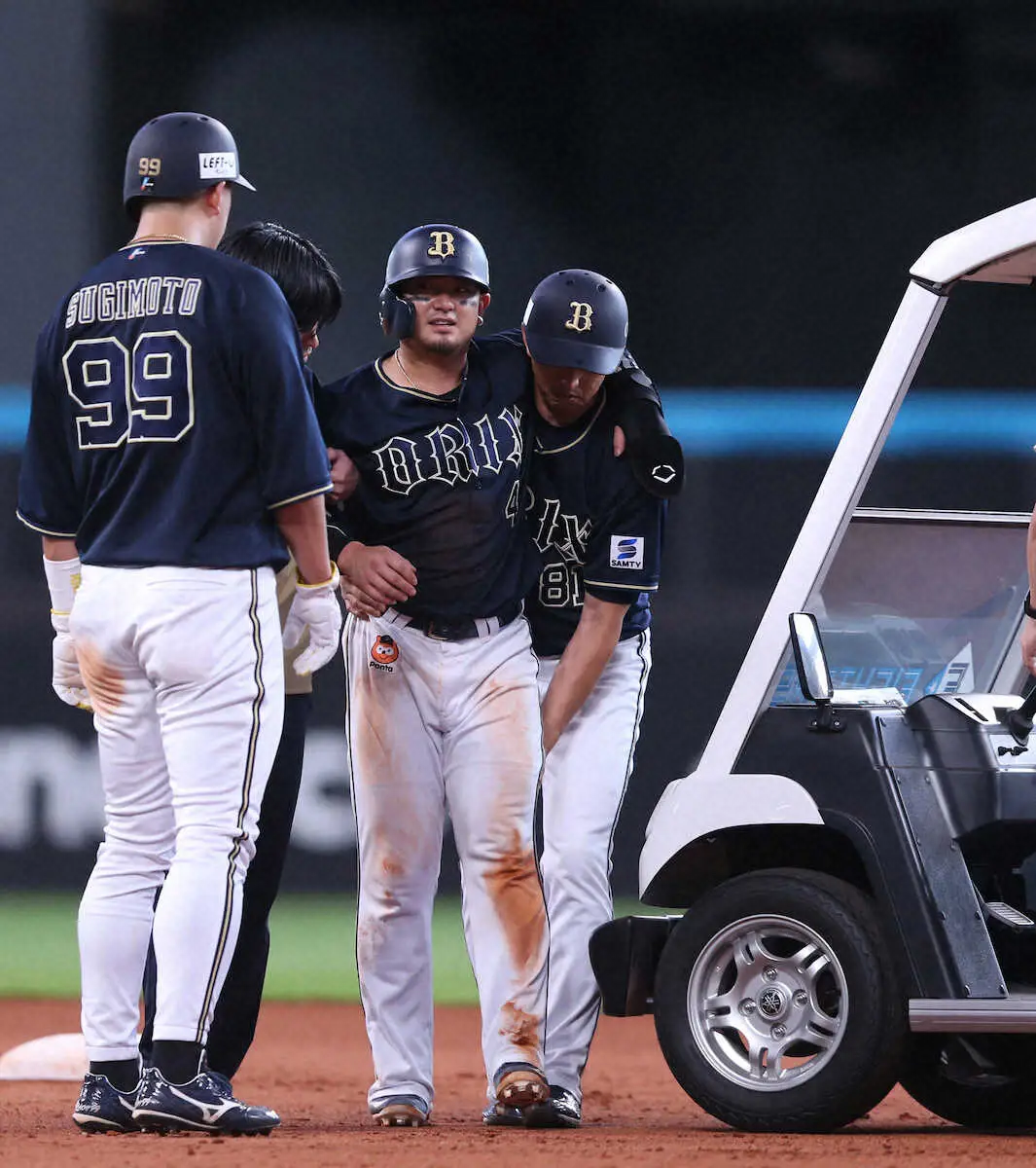首位のオリックスを支える大黒柱に緊急事態だ。「4番・DH」で出場した森が、8回の走塁で左太腿裏を負傷して交代した。