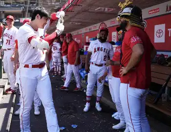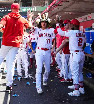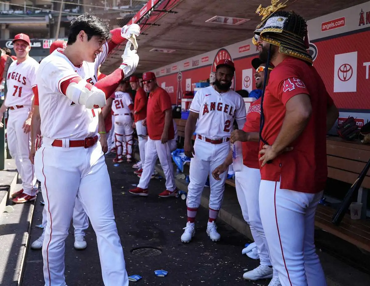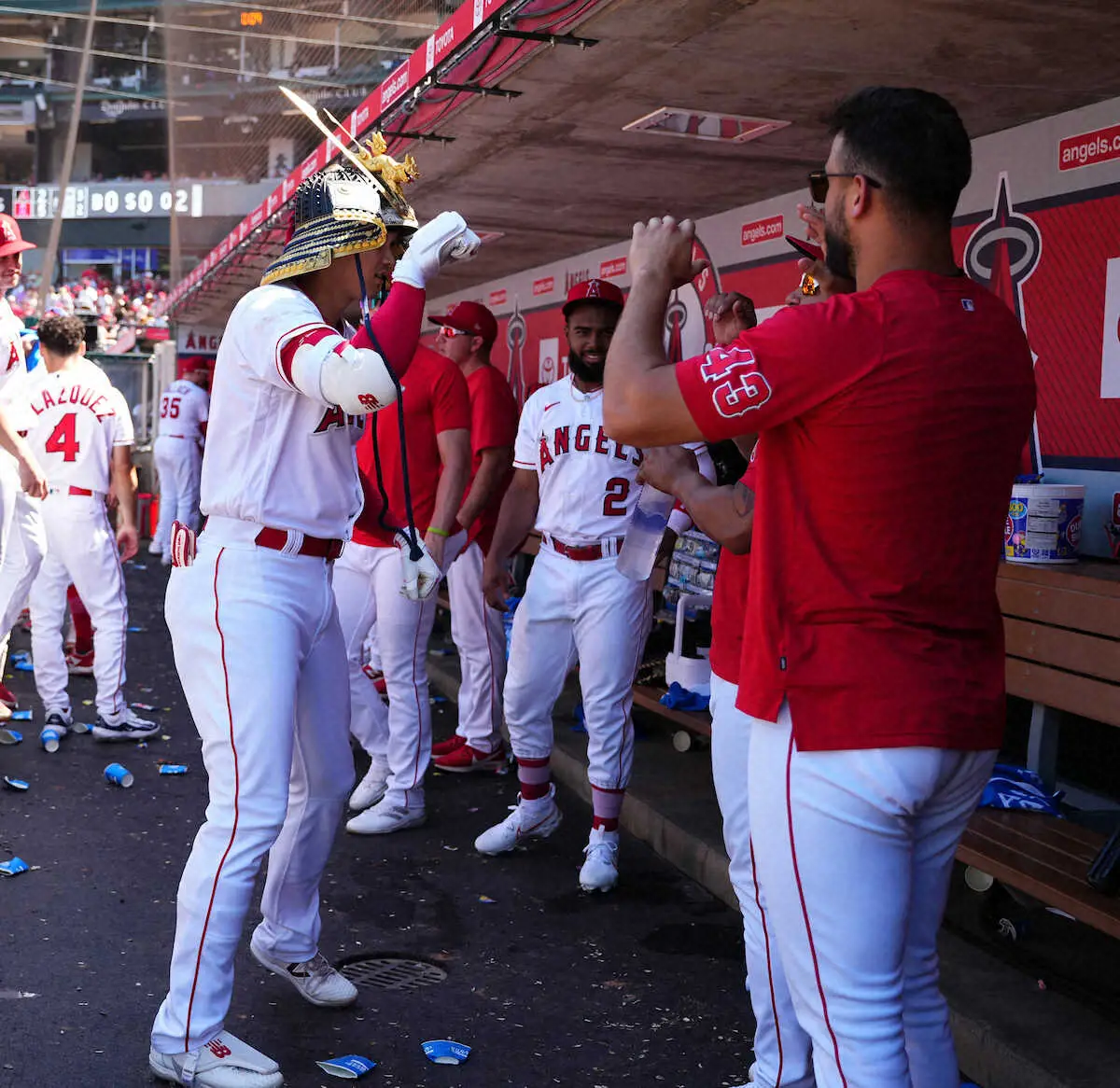 <エンゼルス・ダイヤモンドバックス>8回、ソロを放った大谷はナインの出迎えを受ける(撮影・沢田 明徳) Photo by スポニチ 招き猫?グータッチ?大谷翔平31号で“兜パフォ”後のポーズが話題「可愛す… ギャラリーで見る この記事のフォト 2023年07月03日の画像一覧 もっと見る 2023年07月03日の画像をもっと見る
