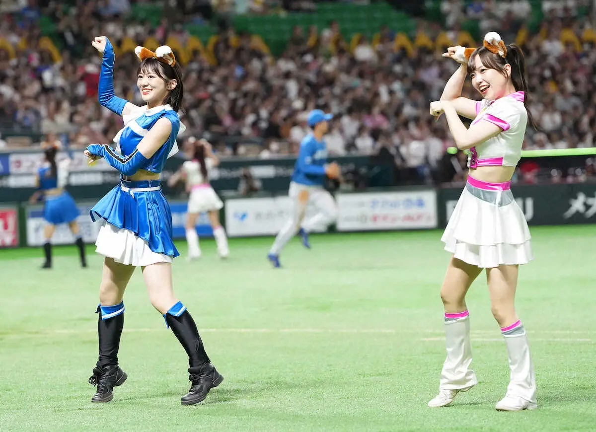 <ソ・日12>ペイペイドームでよかよかダンスを踊るハニーズとファイターズガール(撮影・岡田 丈靖) Photo by スポニチ ファイターズガールがハニーズとコラボ「よかよかダンス」 ネット歓喜「… ギャラリーで見る この記事のフォト 2023年07月04日の画像一覧 もっと見る 2023年07月04日の画像をもっと見る