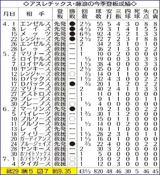 ◇藤浪の今季成績表◇(7月5日現在) Photo by スポニチ アスレチックス 投打かみ合い大勝 前日勝利の藤浪晋太郎の連投はなし ギャラリーで見る この記事のフォト 2023年07月06日の画像一覧 もっと見る 2023年07月06日の画像をもっと見る