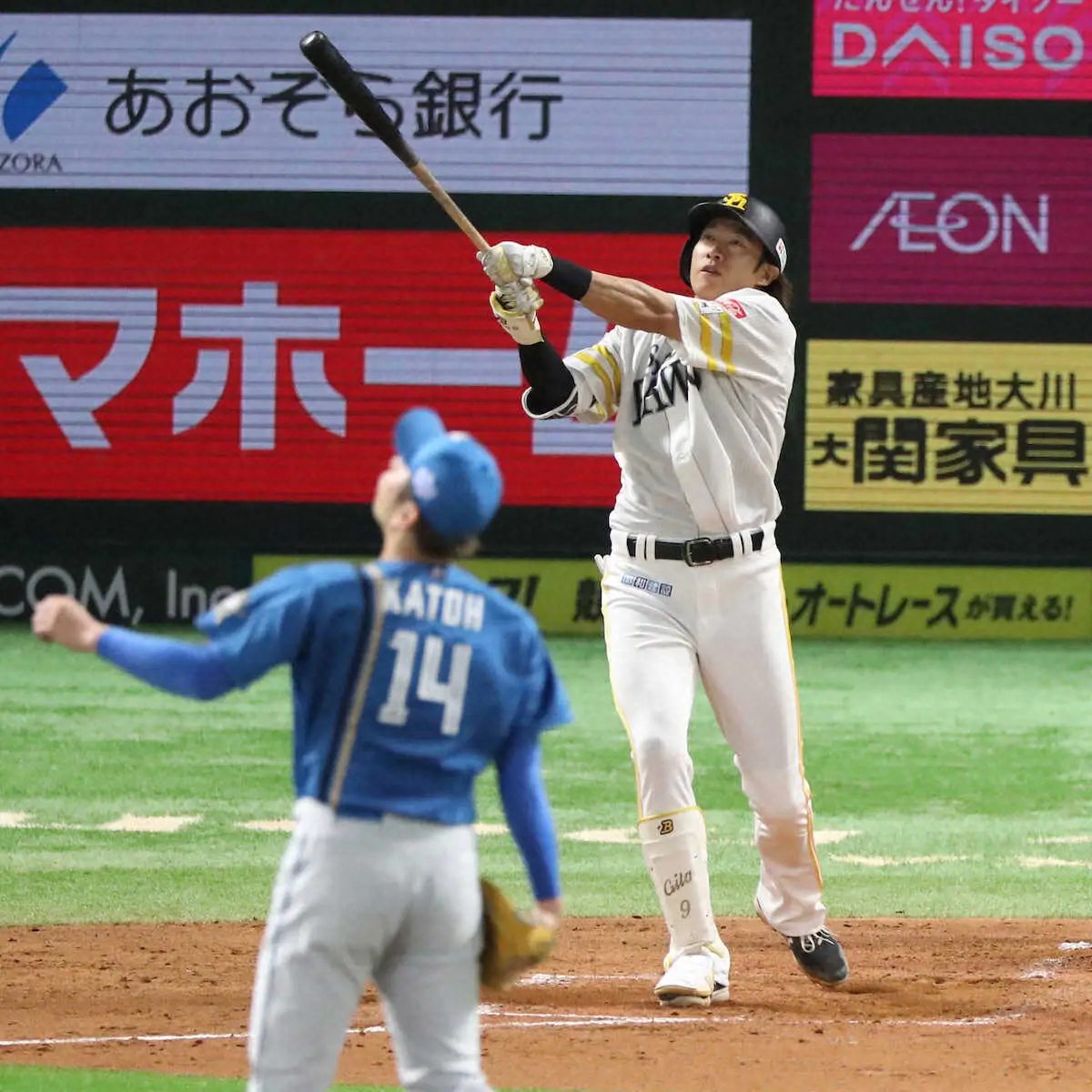 <ソ・日>3回、好守した柳田(右)と笑顔でタッチを交わす大関(撮影・岡田 丈靖) Photo by スポニチ ソフトB柳田 好守に躍動!“レーザービーム”からの先制13号2ランにネット歓… ギャラリーで見る この記事のフォト 2023年07月06日の画像一覧 もっと見る 2023年07月06日の画像をもっと見る