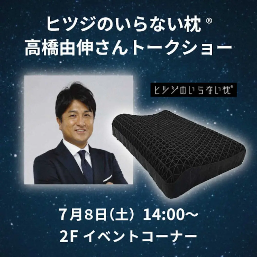 今回はクラウドファンディングサイト「Makuake」の枕部門で歴代1位の大ヒット商品となっている「ヒツジのいらない枕」とともに、高橋前監督が睡眠についてファンの前で話す。