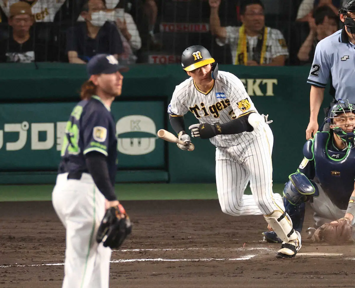 1点を追う6回に先頭・中野の四球とノイジーの左前打で無死一、二塁。4番・大山が苦戦を強いられていたヤクルト・ピーターズから左翼線への適時二塁打を放って同点に追いついた。
