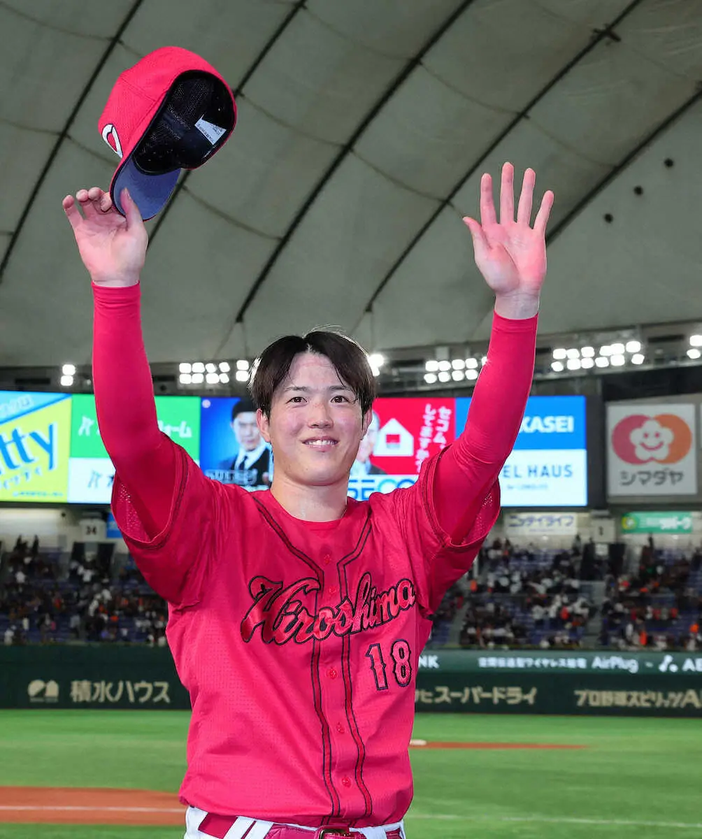 <巨・広>ヒーローインタビューで後方から極楽とんぼの山本圭壱が声を出す中でインタビューに答える森下(撮影・光山 貴大) Photo by スポニチ 広島・森下のインタビュー 背後にまさかの人登場でSNS“炎上”「うるさい!… ギャラリーで見る この記事のフォト 2023年07月12日の画像一覧 もっと見る 2023年07月12日の画像をもっと見る