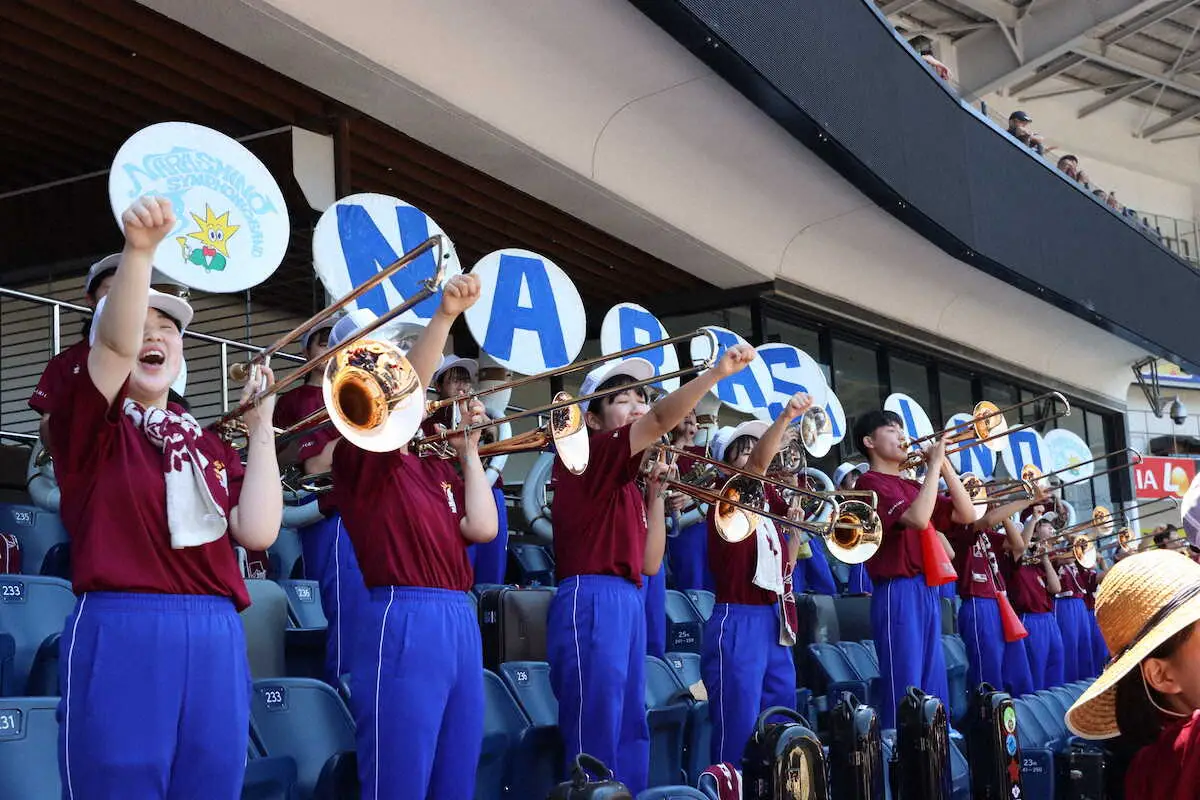 4年ぶりに声出し応援が解禁。習志野は美爆音で知られる吹奏楽部の応援に、序盤から打線が乗せられた。初回に3安打で3得点。終盤の八千代の反撃をかわし、初戦を突破した。