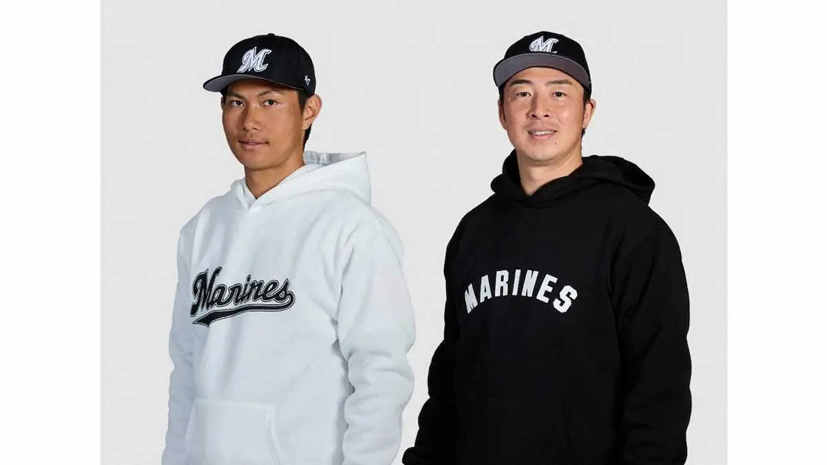 WHITEパーカーはホームユニホームと同じ白地に、胸にMARINESのワードロゴが施されたシンプルなデザインで、BLACKパーカーは選手が着用しているチームアパレルのオフフィールドTシャツと同じ字体で、胸に「MARINES」が施されたデザインとなっている。